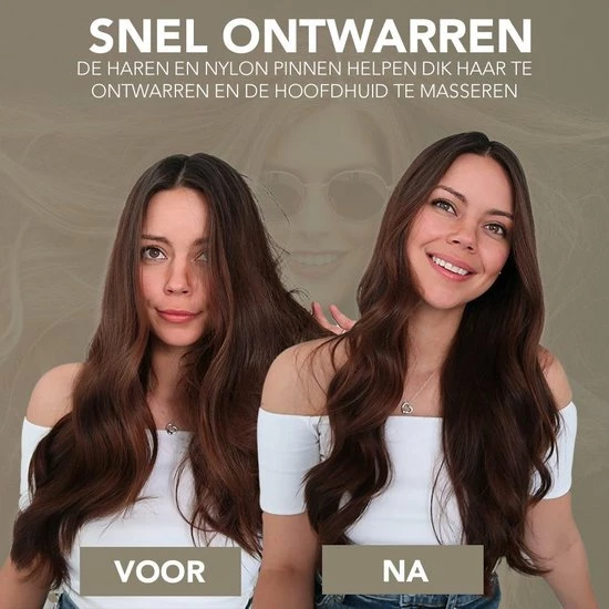 Snel ontwarren – De haren en nylon helpen dik haar te ontwarren en de hoofdhuid te masseren terwijl olie van de wortel naar de punt van je haar wordt verspreid.
