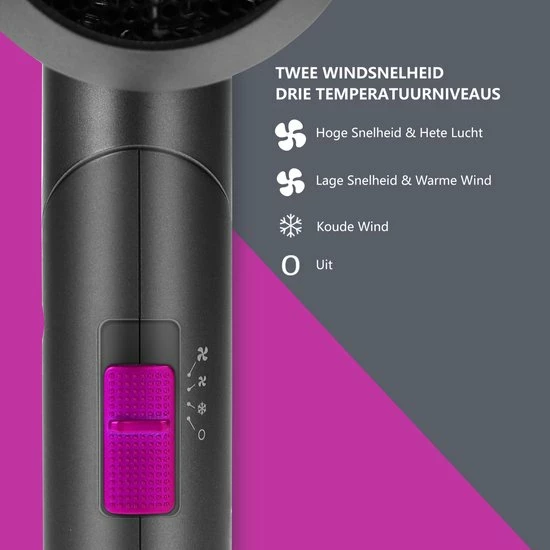 De Aigostar Diane 32QYD FΓΆhn is jouw nieuwe stijlvolle reisgenoot. Ze is speciaal ontworpen om je haar te drogen zowel thuis als op vakantie. De Diane FΓΆhn is makkelijk in gebruik en heeft een handige inklapbare handvat om het makkelijk op te bergen.