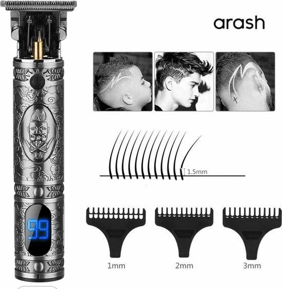 arash® Tondeuse is een veelzijdige trimmer waarmee je moeiteloos je unieke stijl kunt creeëren. De Dualcut-technologie met veel mesjes zorgt voor optimale precisie. De multigroomer is met de 4 meegeleverde hulpstukken een alles-in-één-trimmer voor gezicht, haar en lichaam. De 4 hulpstukken zijn: metalen trimmer, bodyshave met huidbescherming, precisiescheerapparaat, precisietrimmer en 4 schokbestendige kammen voor (stoppel)baard, haar en lichaamsbeharing. De multigroomer is daarnaast ook douchebestendig.