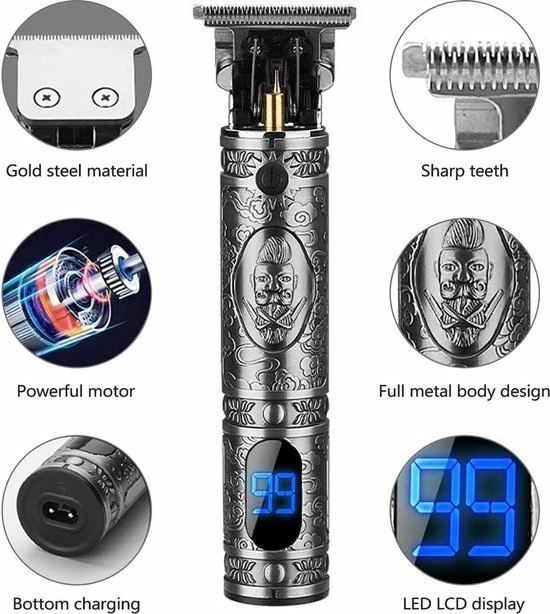 Gebruik de metalen trimmer zonder kam om heldere, scherpe lijnen te maken rond uw baard, nek en haarlijn of trim uw lichaamshaar tot een minimumlengte