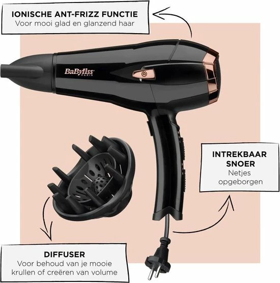 De föhn is inclusief een grote diffuser van 15 mm. Met een diffuser kun je je krullen mooie laten drogen of je creëert er meer volume mee. Met de blaasmond style je het haar met een borstel of fijn om preciezer te werk te gaan, zoals bijvoorbeeld het stylen van je pony.