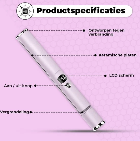 Keramische coating met antistatische toermalijn voor moeiteloze styling, en pluisvrij en superzacht glanzend haar
