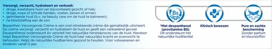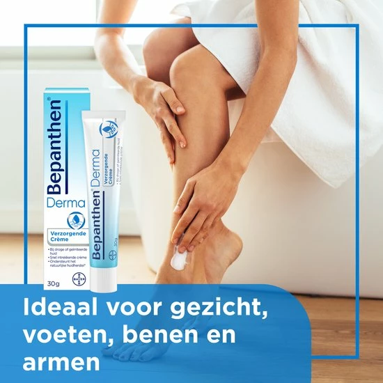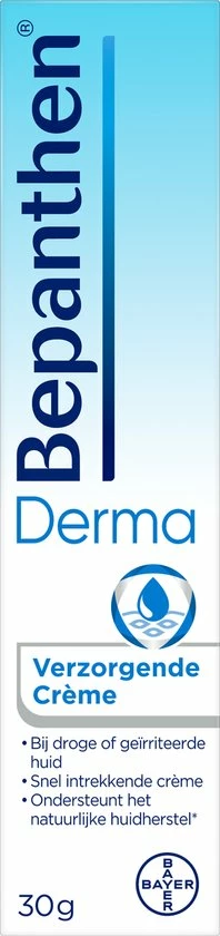 Bepanthen Verzorgende Creme hydrateert en verzacht de huid en ondersteunt het huidherstel.* De Bepanthen Creme (hydraterende creme) geeft een verfrissend gevoel, smeert gemakkelijk uit en trekt snel in. De hoge concentratie dexpanthenol (5%) helpt het natuurlijke herstelproces van de huid. De Bepanthen Verzorgende Creme is ideaal voor bijvoorbeeld: