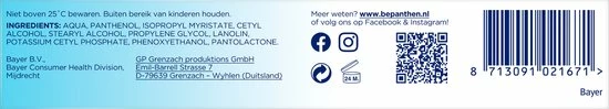 *Bepanthen bevat dexpanthenol. Deze stof heeft de bekende eigenschap het huidherstel te ondersteunen.