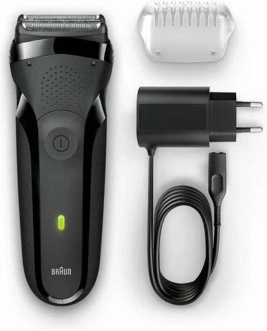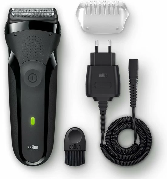 – Inhoud: Braun Series 3 scheersysteem, beschermkap en intelligente stekker voor automatische aanpassing aan 100-240 voltage