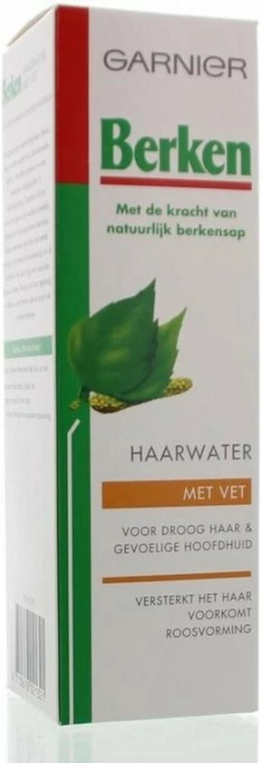 Berken Haarwater met vet versterkt het haar en voorkomt roosvorming. Geschikt voor droog haar en een gevoelige hoofdhuid. Berken bevat zuivere sappen van Scandinavische berken, natuurlijke proteïnen en zeer werkzame voedingsstoffen in alcoholoplossing. Daardoor blijft de haarwortel gezond en worden schadelijke bacteriën en micro-organismen bestreden.