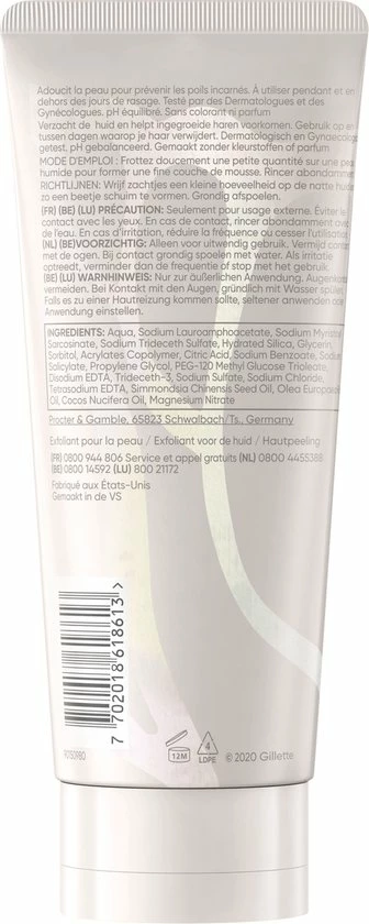 De Gillette Venus Satin Care Voor Huid en Schaamhaar Exfoliant voor een Zachte Huid kan worden gebruikt op of tussen de ontharingsdagen door om je huid glad te maken en te helpen beschermen tegen wondjes en sneetjes. Het exfolieert zachtjes om dode huidcellen te verwijderen en talg, vuil en oliΓ«n op het huidoppervlak, wat kan leiden tot vastzittende of ingegroeide haartjes, weg te spoelen. dermatologisch en gynaecologisch getest, pH-gebalanceerd. Gemaakt zonder kleurstoffen of parfum. Gebruik samen met het volledige Venus Satin Care voor Huid en Schaamhaar assortiment voor een optimaal resultaat.