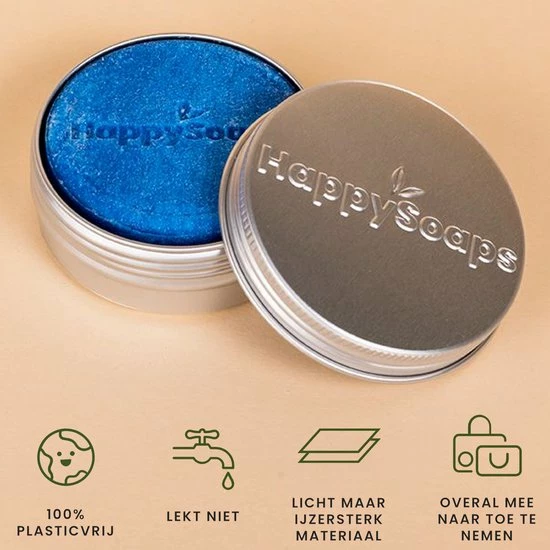 Met dit superhandige HappySoaps Shampoo Bewaar- en Reisblikje kun je met een gerust hart op reis. Hij is namelijk 100% plastic vrij en daarnaast ijzersterk! Dat betekent geen gedoe meer met lekkende shampoo flessen. Alle Shampoo Bars passen in dit blikje, maar niet de Body Bars.