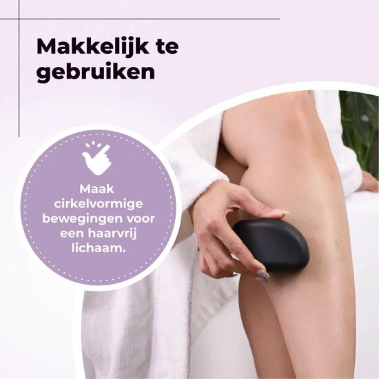 - Toepassen op elk deel van het lichaam: Crystal Hair Eraser is veilig te gebruiken op knokkels, armen, benen, borst en rug. We raden echter aan om niet te veel te gebruiken of te hard te wrijven. Als u een gevoelige huid hebt, probeer het dan eerst op uw armen/benen voordat u het op andere delicate delen gebruikt.