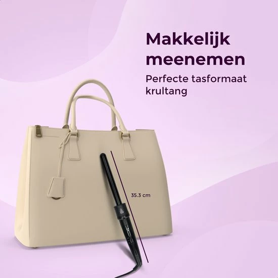 Met een conisch ontwerp loopt de golventang af naar binnen en wordt elke pluk van groot naar klein gekruld. De golvenkrultang creëert strakke zachte krullen voor een natuurlijk effect; jouw krullen lijken vanaf nu net echt.