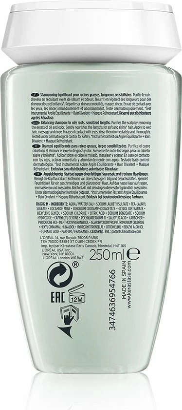 Kérastase Specifique Bain Divalent Shampoo en de gevoelige lengten. De shampoo reinigt het haar mild, maar de hoofdhuid intensief. De hoofdhuid wordt op deze manier verfrist en het voorkomt vet haar. Kérastase Specifique Bain Divalent Shampoo maakt het haar zacht, voedt het haar en voorkomt verdere uitdroging van het haar. Het haar krijgt een natuurlijke glans en is makkelijk handelbaar.