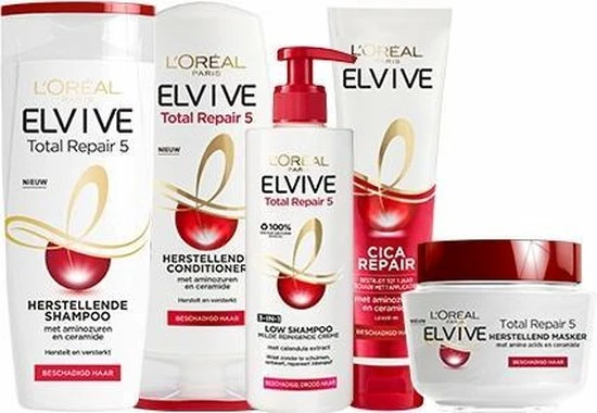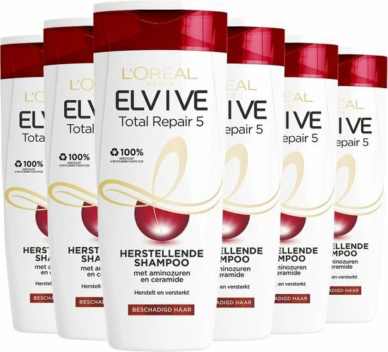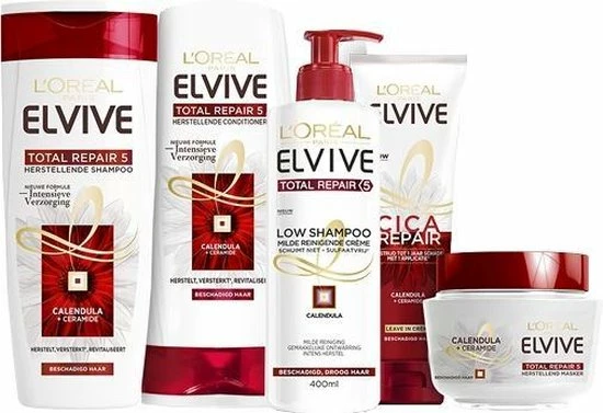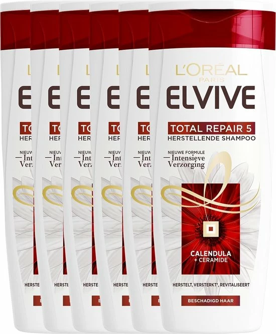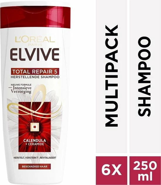 Voelt je fijne en zwakke haar futloos, stug en dof aan? Elvive Total Repair 5 shampoo met Cicamide + Pro-Keratine herstelt de haarvezel en versterkt de structuur van het haar. Daarnaast geeft het je haren een regelmatig en glad oppervlak.