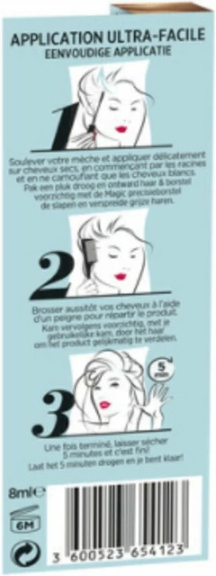 Met LβOrΓ©al Paris Magic Retouch First Greys camoufleer je gemakkelijk en nauwkeurig jouw eerste grijze haren en grijze haren die zich concentreren bij de slapen.