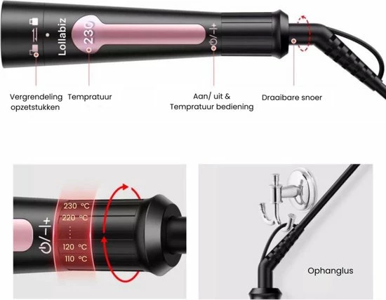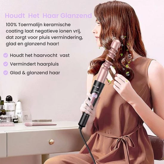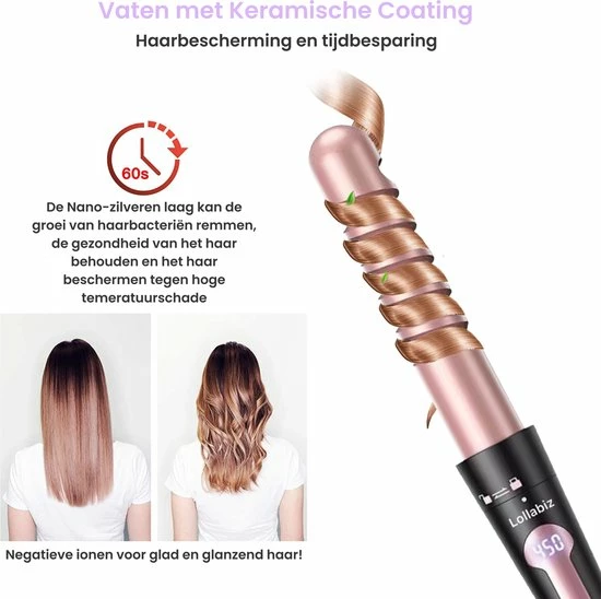 Wil je een mooie bos krullen die lang erin zit en jouw haar tegelijkertijd gezond houden? De keramische ionen krultang van Lollabiz beschermt je haar van het warmte. Dankzij de warmteplaten met keramische coating en toermalijnkristallen glijdt de stijltang zeer gemakkelijk door het haar zonder statische haar achter te laten. De krultang wordt geleverd met 4 verschillende opzetstukken, zo kun je jouw haar in elk gewenste stijl brengen. Of je nu zachte krullen, Spiraalkrullen, golvende krullen of steil haar wilt doen, Je kiest de gewenste temperatuur tussen 110 en 230 graden met een snelle opwarmtijd en een ergonomisch ontwerp heb je in een mum van tijd weelderige lokken.