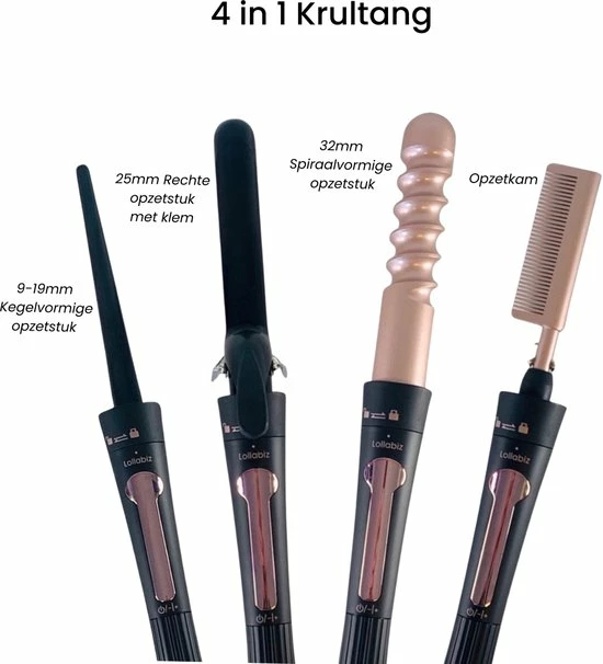 De professionele haar krultangen van Lollabiz worden geleverd met 4 verwisselbare toermalijn keramische ionenparen, Of je nu zachte krullen spiraalkrullen, golvende krullen of gewoon seil haar wilt doen, je kunt je verbeelding uitbreiden, met deze krultang is het genoeg om aan al je behoeften te voldoen.