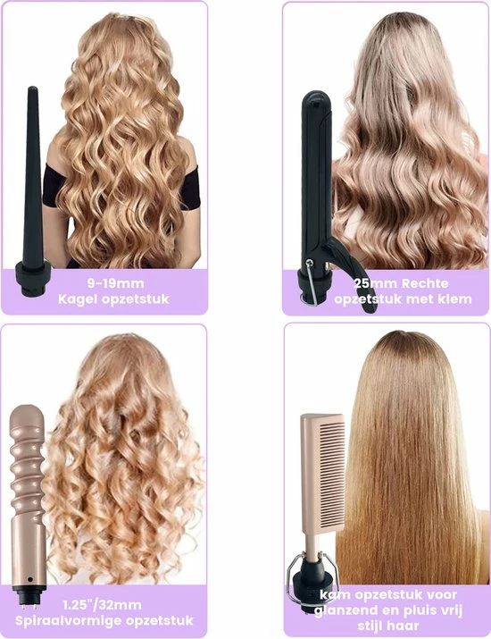 - 32mm spiral vormige opzetstuk: Hiermee creΓͺer je grote spiraalvormige Krullen van constante grote