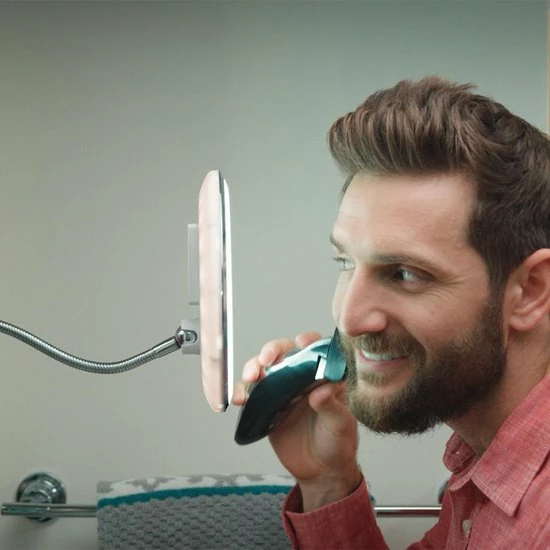 My Flexible Mirror is niet alleen een make-up spiegel met verlichting, maar kan ook gebruikt worden als scheerspiegel in de badkamer. De spiegel vergroot 7x; ideaal voor het trimmen van strakke baardlijnen. En dankzij de zachte LED-verlichting langs de zijkant heeft u altijd voldoende licht om ieder detail goed te kunnen zien.