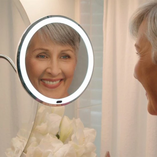 My Flexible Mirror is een praktische make-up spiegel met LED-verlichting. De spiegel heeft een flexibele arm waarmee de spiegel in de juiste positie gebracht kan worden. Met de krachtige zuignap kan de spiegel aan zowel verticale (spiegel, raam, douchewand) als horizontale oppervlakken (kaptafel, bureau) bevestigd worden. Zo heeft u altijd beide handen vrij en optimaal zicht.