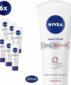 NIVEA 3in1 Repair Handcrème geeft je in een handomdraai 24 uur lang zachte & beschermde handen. De geconcentreerde formule met Dexpanthenol herstelt onmiddellijk zeer droge & trekkerige handen, geeft langdurige hydratatie en versterkt de huidbarrière om verlies van vocht te voorkomen.