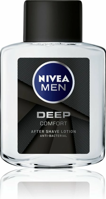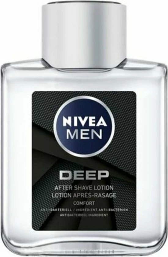 NIVEA MEN DEEP After Shave lotion ondersteunt het herstel van huidirirritaties. De unieke formule met anti-bacterieel ingrediΓ«nt herstelt huidirritaties na het scheren en voorkomt uitdroging. Voor een comfortabel en schoon huidgevoel.