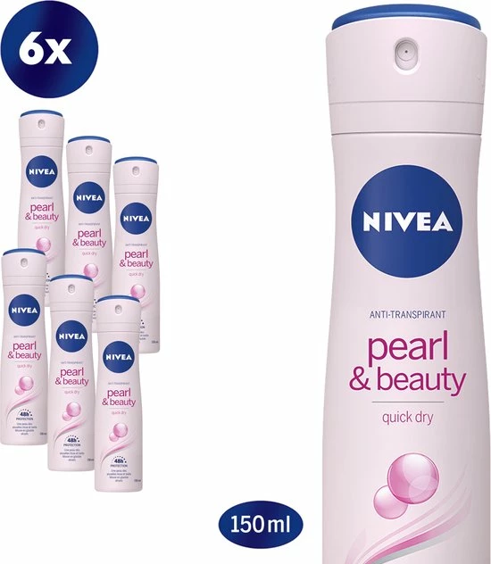 NIVEA Pearl & Beauty Anti-Transpirant met parelextracten garandeert 48 uur lang een effectieve transpiratie-regulerende werking en zorgt voor een egale huid voor mooie, verleidelijke oksels. Het is de optimale combinatie van een betrouwbare bescherming tegen transpireren en NIVEAβs milde verzorging. Ideaal voor na het scheren.