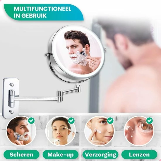 De spiegel is 360 graden horizontaal en verticaal roteerbaar. Zo kan je vanuit alle denkbare hoeken jezelf goed in de spiegel zien. Deze LED spiegel is perfect voor het opmaken, epileren, scheren en om lenzen aan te brengen zelfs in donkere of slecht verlichte ruimtes