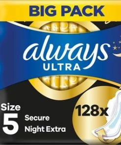 Goedkoopste 🤩 Always Ultra Secure Night Met Vleugels – Voordeelverpakking 128 Stuks – Maandverband 😉