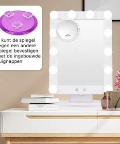 Aanbiedingen 🥰 HUISSON Make Up Spiegel Met Verlichting 24 LED Lampen Scheerspiegel Vergrootspiegel 😍