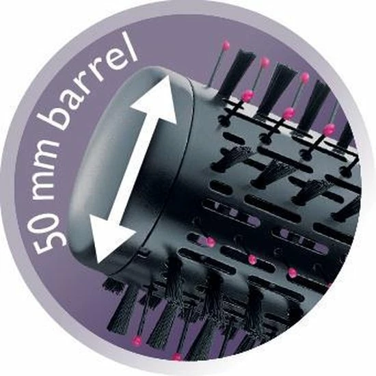 De 1000 Watt heteluchtborstel is ideaal voor drogen van langer haar en creëert textuur, volume en een golvende beweging.
