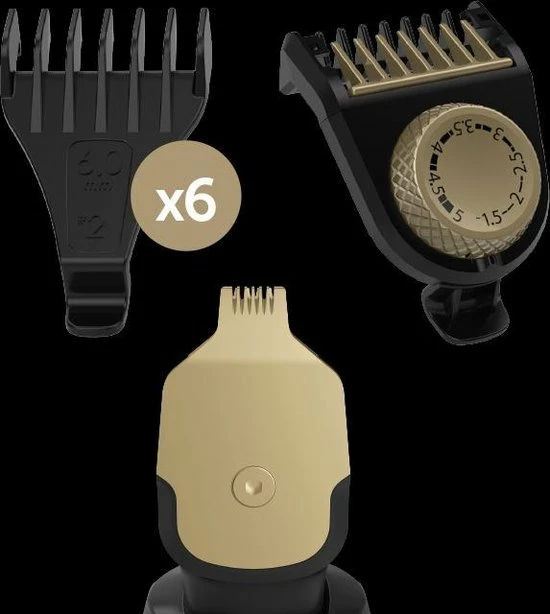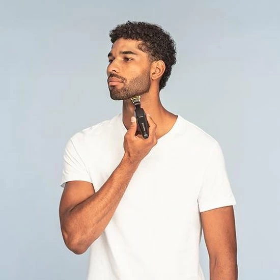 De baardtrimmer trimt op 0.4mm op de huid, waarmee je strak op de huid kunt trimmer. Hiermee kun je perfect randen, precisie en detail aanbrengen. Met de 7 verschillende opzetstukken kun je alle kanten op met je baard. Gebruik de verstelbare kam voor de lengte-instelling van 1mm – 5 mm, in te stellen per 0,5mm. Maak gebruik van de 6 vaste opzetkammen van 1.5 mm tot 15 mm en kies je eigen stijl. Met het precisie snijblad werk je gemakkelijk precisiestukjes bij zoals je bakkebaarden.
