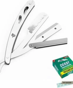 Met dit klassiek open scheermes scheer jij je voortaan als een echte barbier. Het mes wordt geleverd inclusief 100 derby premium scheermesjes waardoor jij een hele tijd voorruit kunt. Het mes is perfect voor het bijwerken van je baard, bakkebaarden of om te scheren.