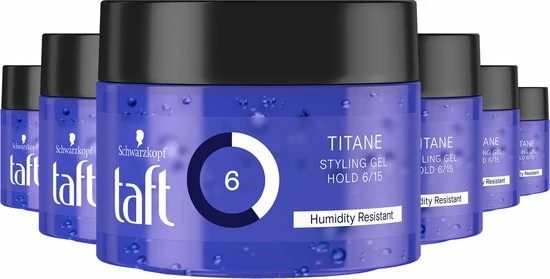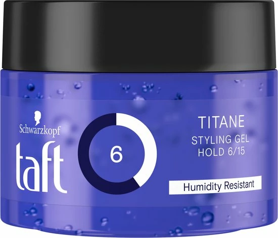 Taft Titane Styling Gel is vochtbestendig. Het geeft je haar een titanium-sterke hold en plakt niet. Deze gel is gemakkelijk uit te wassen en is vrij van alcohol (ethylalcohol).