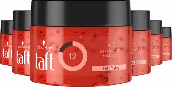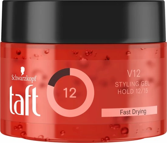 Taft V12 Styling Gel met speed-hold technologie heeft een sneldrogende formule. Deze gel is gemakkelijk uit te wassen, plakt niet en is vrij van alcohol (ethylalcohol).