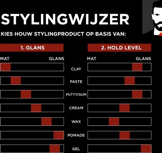 - HOLD: Op zoek naar een product met een hoge hold? Ga dan voor een gel of paste. Liever een product met een lage hold, dan zal een cream of wax geschikter zijn.