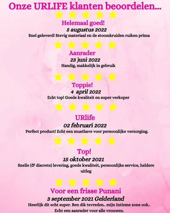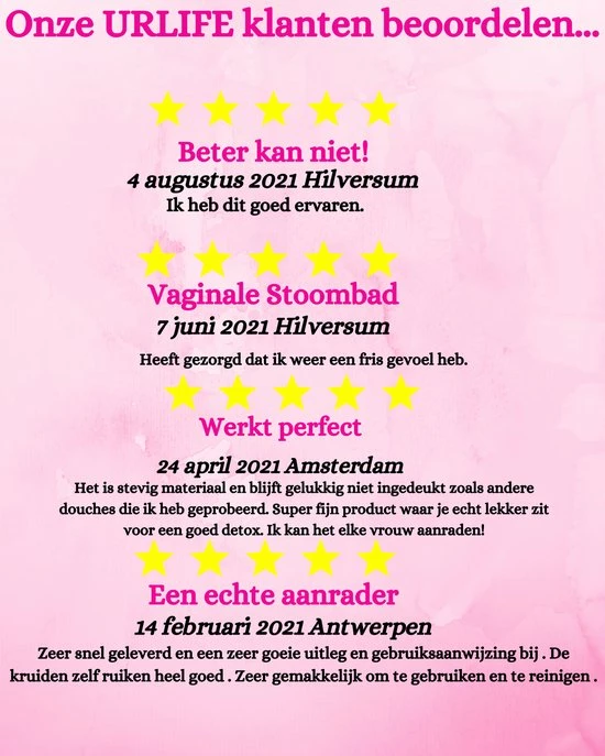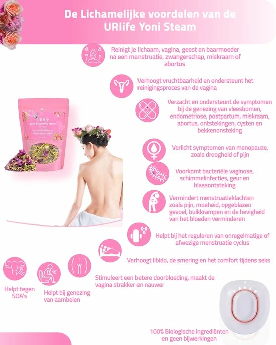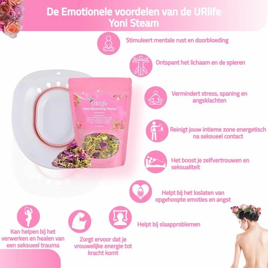 Zoals bovenaan al benoemd zorgt deze URlife Stoombad voor een helende effect dankzij de natuurlijk kruiden. De URlife Yoni Steam Kruiden bevatten 100% biologisch handgemaakte kruiden die kunnen helpen bij het voorkomen of behandelen van nachtelijk zweten, geurtjes, infecties, pijn, vermoeidheid, stress, aambeien, opvliegers, vaginale droogheid, een laag libido, onregelmatige vaginale afscheiding, bacteriΓ«n, schimmels en het verhogen van de vruchtbaarheid. Ontdek de kracht van deze natuurlijke stoomkruiden, waardoor ontspanning en bloedcirculatie bevordert worden en hiermee geuren verwijderd worden door het reinigen van de vagina!