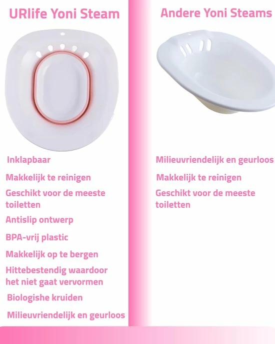 Ondanks dat de Yoni Steams er van buiten hetzelfde ongeveer uitzien, is de URlife Stoombad van hoge kwaliteit. Daarnaast zorgt de URlife Yoni Steam voor meer ruimte doordat deze bad ingeklapt kan worden, om jou zo meer ruimte te besparen. Ook zitten er antislip silliconen kussentjes aangebracht om de stoombad stabiel op de toiletrand te houden terwijl deze in gebruik is. Dit maakt onze Yoni Steam uniek en effectief. Soms is goedkoop juist duurkoop, maak daarom gebruik van onze unieke URlife Yoni V Steam