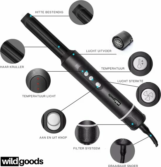 De Wild Goods 7 in 1 Airwrap transformeert ieder haartype in golvend, krullend of stijl gefΓΆhnd haar zonder extreme hitte te gebruiken. Dankzij de combinatie van een krachtige luchtstroom en intelligente warmteregeling, droog en style jij je haar in elk gewenst model zonder het te beschadigen. Met de 7 verschillende opzetstukken, is de Wild Goods 7 in 1 Airwrap de perfecte multistyler voor het creΓ«ren van elke haarstijl.
