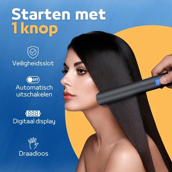 Bestel vandaag nog de draadloze 2-in-1 stijltang en geniet van een prachtige haarlook!